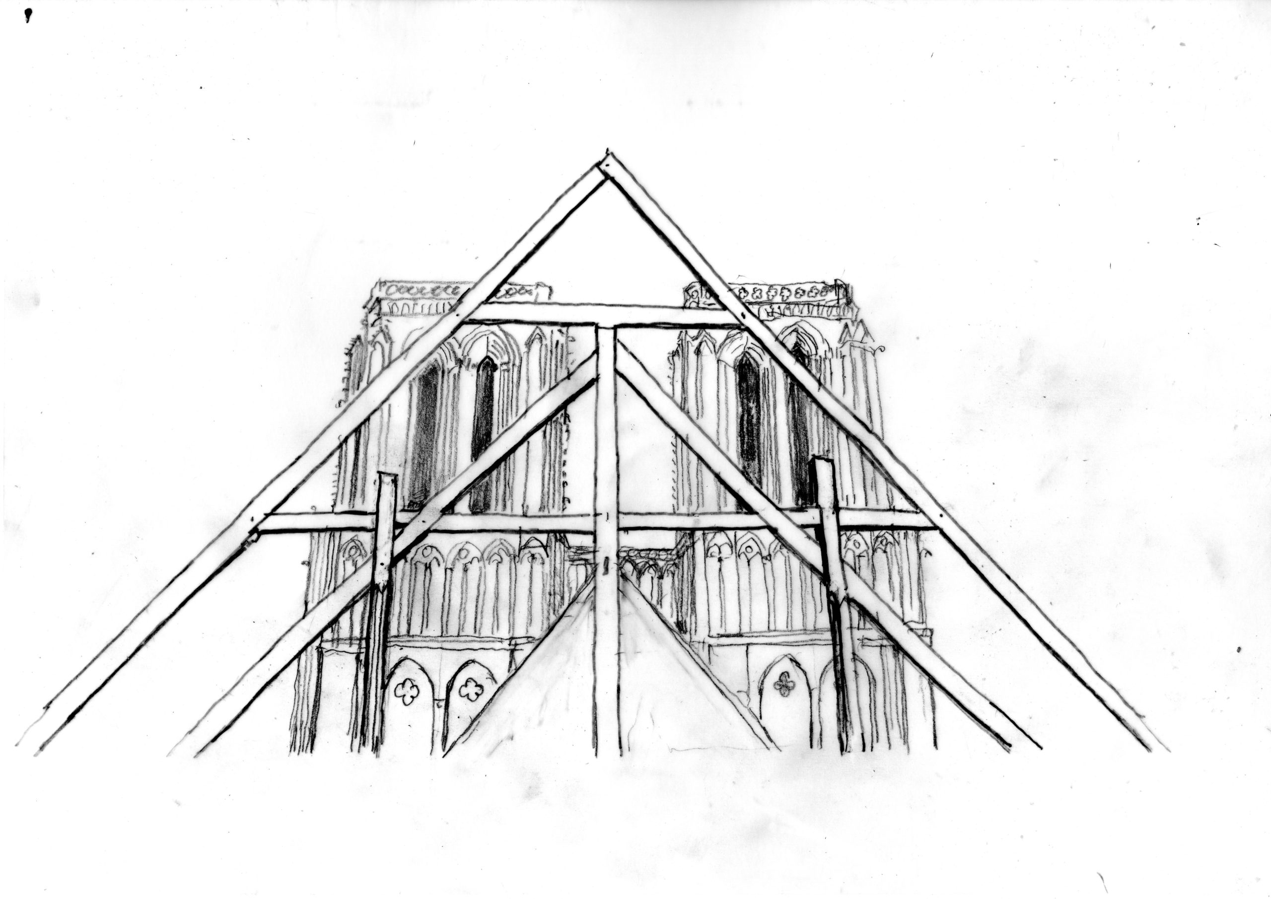 Les cendres étaient encore fumantes que spontanément une vingtaine d’architectes de toutes nationalités, avides de montrer leur créativité, dessinent des projets modernes de restauration. Beaucoup pêchaient par irréalisme et incompatibilité avec le contexte architectural, certains même tenaient du gag. De son côté, Emmanuel Macron appelait de ses vœux un geste architectural contemporain dans le cadre du processus et la composition de la restauration. L’art dit « contemporain » est ivre de son propre vide pour reprendre une expression du philosophe et historien d’art Marc Fumaroli. Eût-ce été folie de voir s’établir dans le ciel parisien l’œuvre d’un plasticien d’aujourd’hui ? …